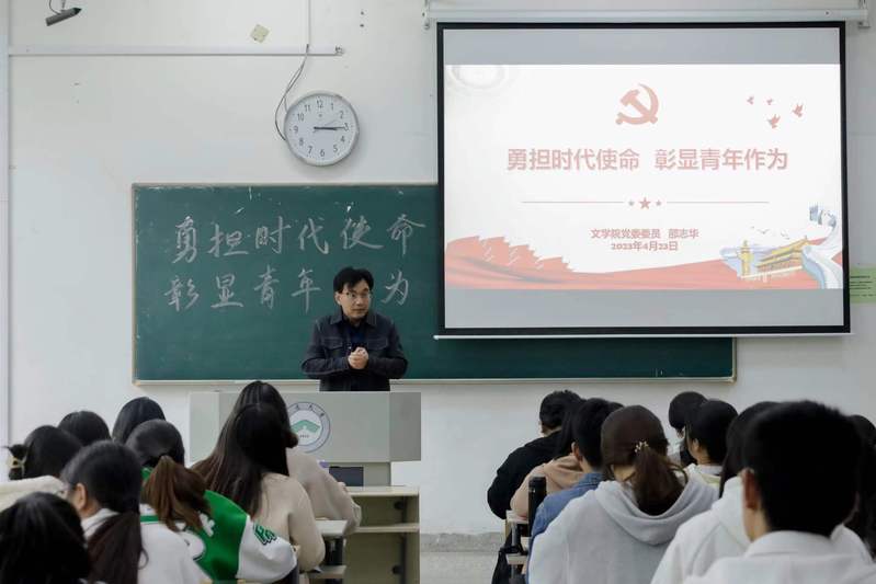 4月23日下午,台湾素人av 分党校举办第五期党员发展对象暨预备党员培训班第四讲,台湾素人av 党委委员邵志华教授以《勇担时代使命 彰显青春活力》为题开展专题讲座。