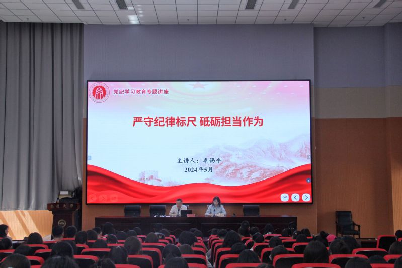 5月22日下午,台湾素人av 举办解读《中国共产党纪律处分条例》的专题讲座,十三届市纪委委员、二级调研员季锡平应邀参加,并作《严守纪律标尺,砥砺担当作为》专题辅导。